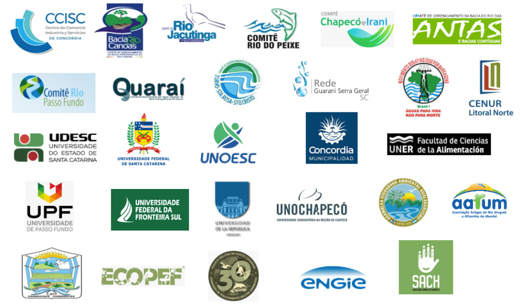Conferencias: Rede Guarani/Serra Geral – (UFSC, UNIPLAC, UNOCHAPECÓ, UDESC, FURB, EPAGRI, UNOESC, UnC, COMITÊ DO JACUTINGA) /Municipalidad de Concordia ER /Universidad de la Repùblica (Uruguay).